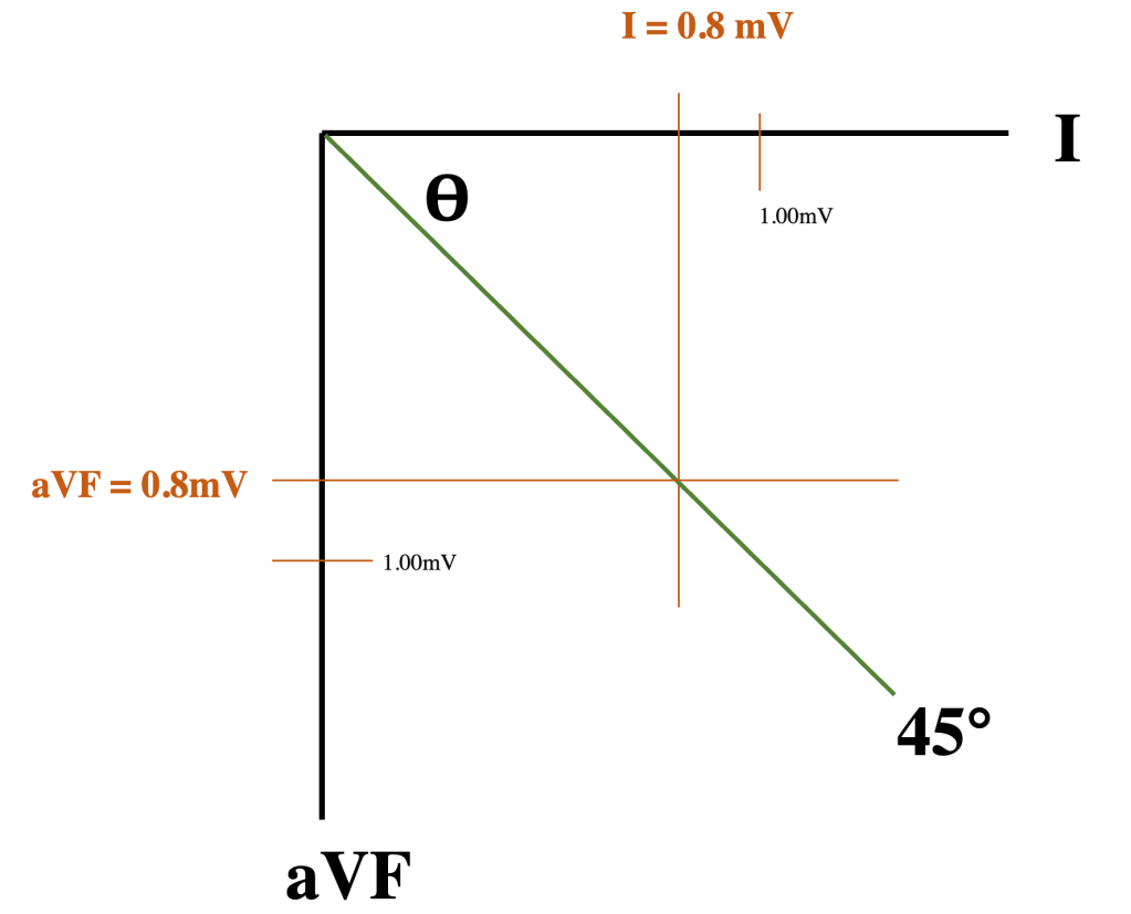 If we will use the original equation using aVF and I, we will get a different answer (i.e. 45 degrees). See FIGURE 5.