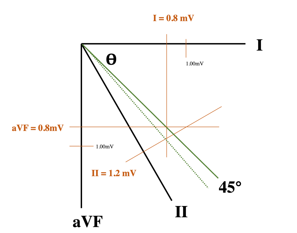 If we are to derive the angle using leads II and I, we can use the equation first used by Madanmohan et al in their 1990 paper.